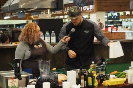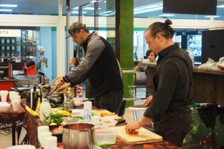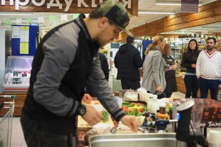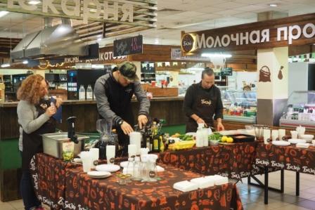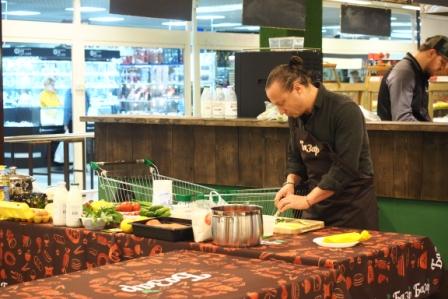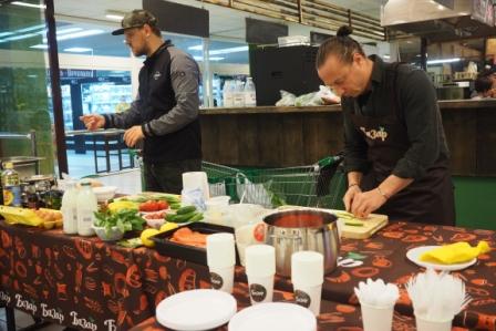 На кулинарном празднике посетители смогли посмотреть процесс приготовления салата с неркой в свекольном маринаде, салата из говядины в тайском стиле, домашнего йогурта, варенья из томатов, а также каши из булгура с белыми грибами.