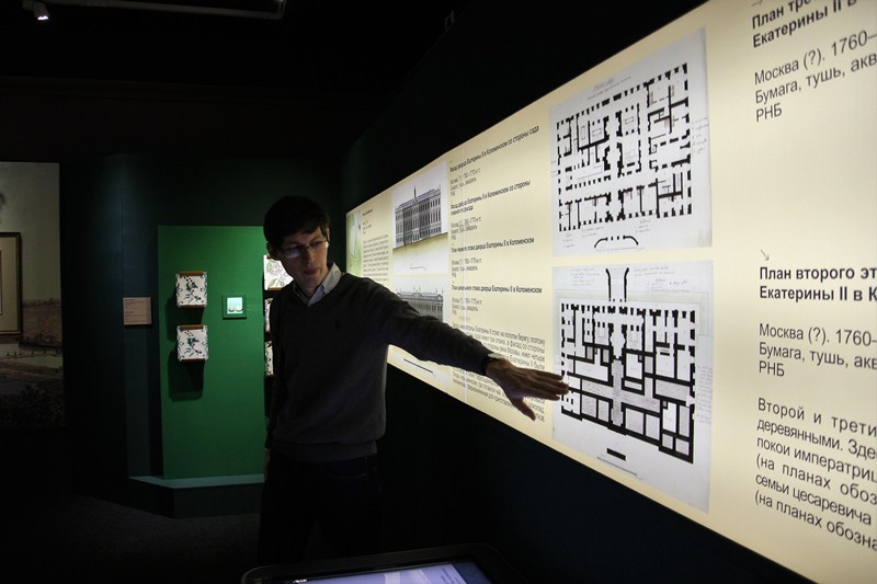 На выставке впервые экспонируется уникальный комплекс чертежей екатерининского дворца, который так и не был построен. Также здесь представлены подлинные документы, рассказывающие о достижениях во внутренней и внешней политике, которые отразились на художественных вкусах, праздничной и повседневной культуре императорского двора.